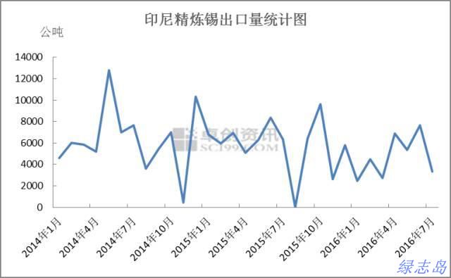 2014-2016年7月印尼精錫出口量如圖所示