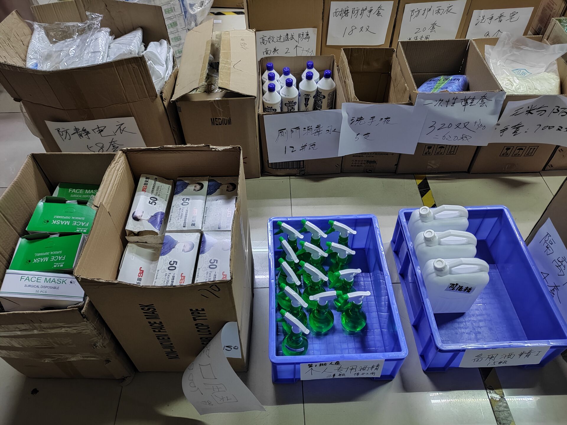▲賴(lài)總對(duì)車(chē)間每個(gè)角落用84消毒水進(jìn)行消毒